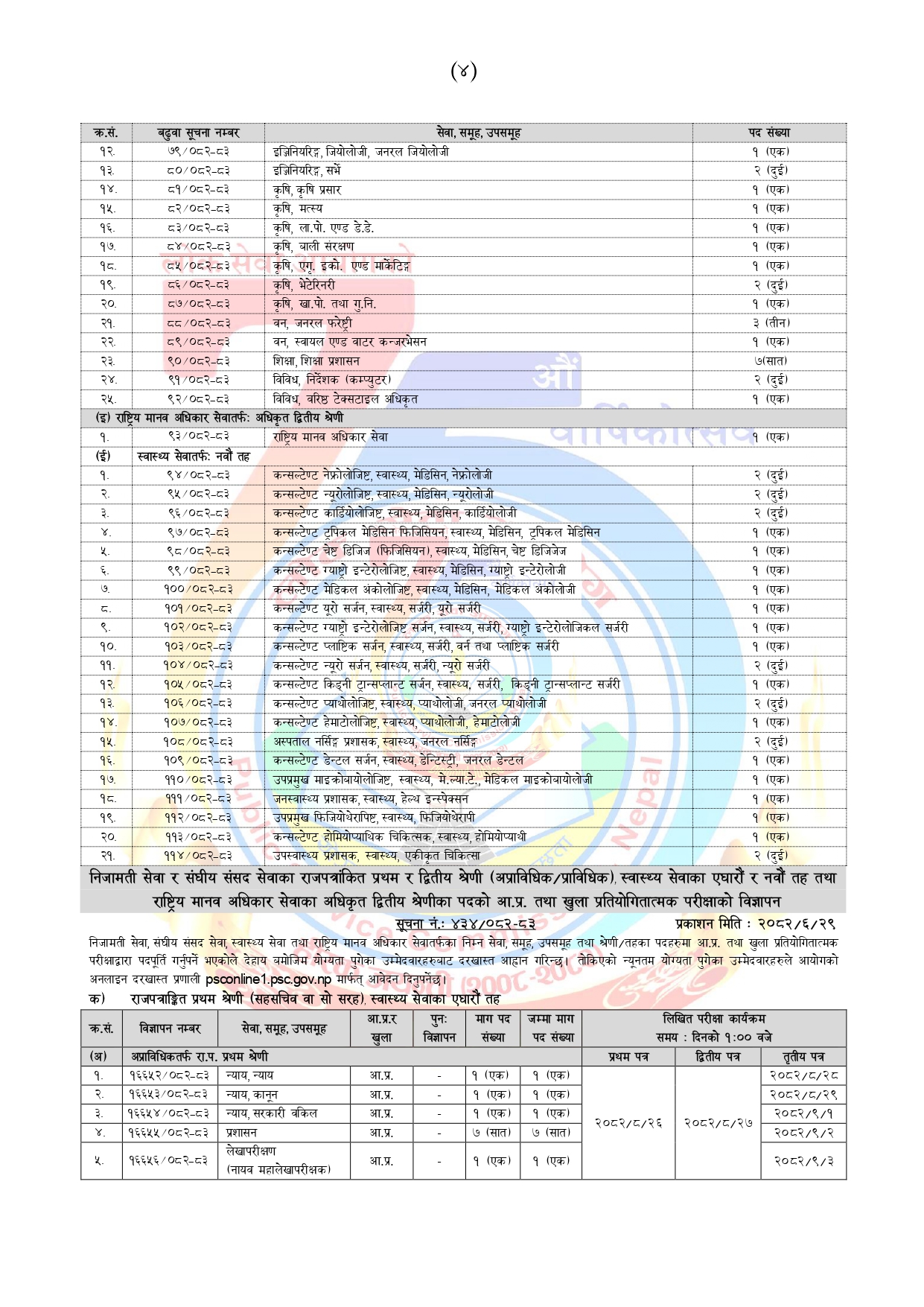 The Public Service Commission (PSC) has officially announced a wide range of vacancies and promotions for various first and second class (gazetted) positions under the civil, health, and federal parliamentary services. The comprehensive notice, published on 2082 Ashwin 29 (October 15, 2025), opens the door for senior government officials and qualified candidates to apply for advancement through performance evaluation, seniority, and open competitive examinations.